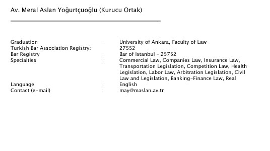 Aslan Law Office was founded in 1993 by the solicitor Meral Aslan Yogurtcuoğlu in Ankara, and resumed services in Istanbul as of 2000.